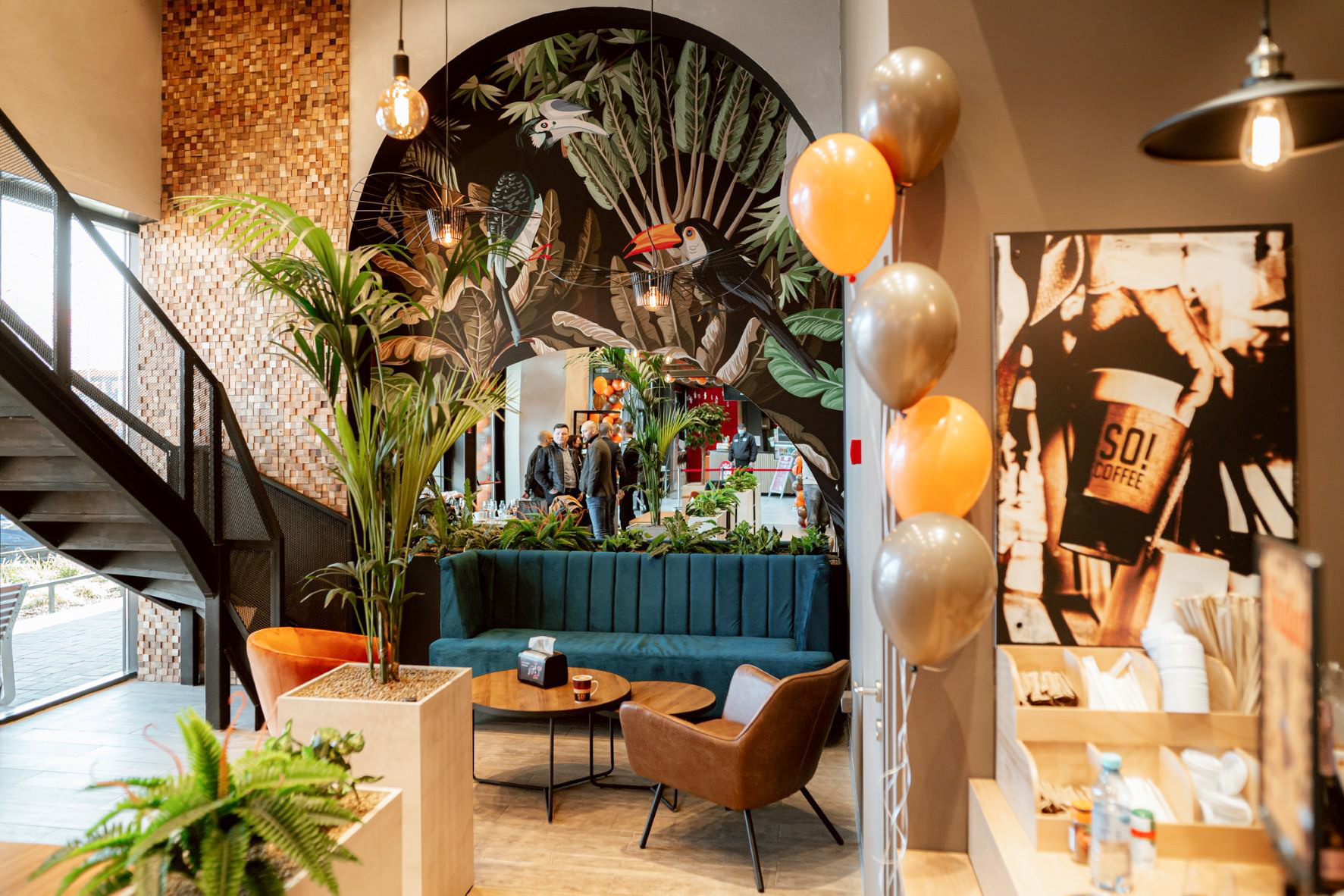 Astfel, în DN1 Value Center clienții se pot bucura de o locație extinsă cu o zonă primitoare de mese la interior la care se adaugă o terasă, în centrul comercial Timișoara Shopping City SO!COFFEE este prezent cu primul format tip insulă, iar în Auchan Drumul Taberei spațiul se prezintă sub forma unei execuții compacte, în filozofie on-the-go. Tot în format compact este și locația din AFI Palace Cotroceni, care este prima cafenea exterioară complementată de o terasă. În Collosseum Mall, cel mai nou spațiu de retail deschis in București, cafeneaua SO!COFFEE are cea mai generoasă și prietenoasă zonă de mese, însoțită de terasa exterioară. Locațiile în format mare au câte un corner cu design deosebit, un decor potrivit pentru un selfie sau poze pentru Instagram.