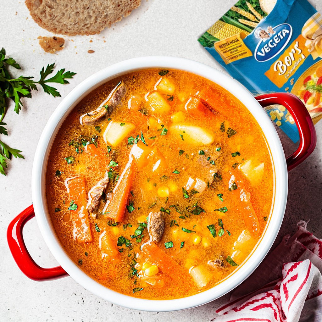 Borșul de pește nu este neapărat agreat de toată lumea. Sunt persoane care îl adoră și persoane care îl detestă. Dar nu borșul este de vină în cazul celor din urmă, ci peștele. Dacă ai la masă și dintre aceștia, ca să nu pierzi timpul preparând două feluri de ciorbe, uite o șmecherie. Înainte de a pune peștele, scoate câteva porții de borș separat, în altă oală, și adaugă VEGETA Natur Gust de Găină. În felul ăsta mulțumești pe toată lumea!