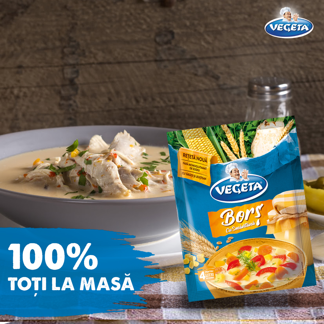 Te strânge frigul? Păi e noiembrie, ce vrei… Merge o ciorbiță fierbinte? Mergeee! Acră, nu?! Cum altfel… O ciorbă, și dacă are carne, și dacă nu are, dacă nici borș VEGETA n-are, aia nu-i ciorbă. Alege ce-ți place între clasicul VEGETA Borș Original, VEGETA Borș cu Legume, VEGETA Borș cu Verdețuri sau catifelatul Vegeta Borș cu Smântână și pune oala pe foc pentru o delicioasă ciorbă. Orice sortiment de borș vei alege, garantat alegi calitatea desăvârșită a legumelor uscate natural, tărâțele din cel mai bun grâu și leușteanul cel mai aromat.