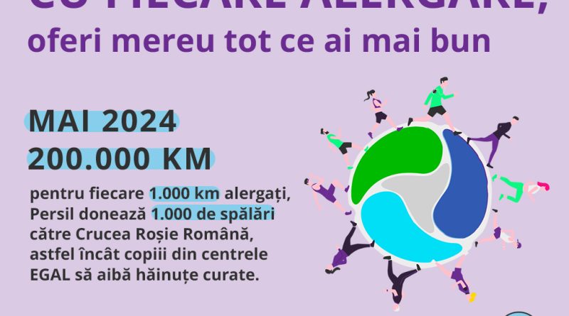 În luna mai, România aleargă pentru o cauză nobilă! Comunitatea Alergado își propune să adune 200.000 de kilometri alergați, iar Persil va oferi 200.000 de spălări gratuite datorită efortului comunității. Kilometrii parcurși vor ajuta copiii din centrele E.G.A.L să aibă hăinuțe curate.