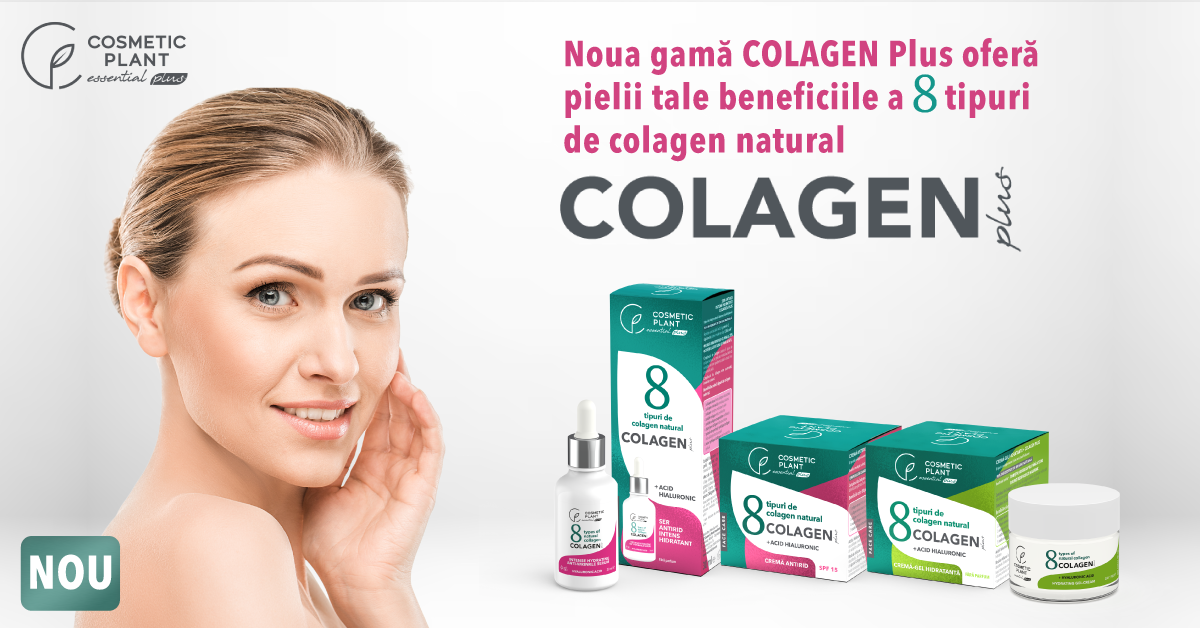 COSMETIC PLANT continuă să inoveze pe piața produselor cosmetice, prin știință și cercetare, iar noua gamă COLAGEN Plus aduce încă o formulă unică, care are la bază ingrediente cu efect multiplu. Astfel, pe lângă complexul de colagen, produsele conțin acid hialuronic și aloe vera, plus alte ingrediente active care redau pielii elasticitatea și aspectul tânăr și sănătos. Printre principalele beneficii ale celor 8 tipuri de colagen natural se numără îmbunătățirea elasticității, stimularea elastinei, menținerea umidității în piele, reducerea liniilor fine, hidratarea intensă, efectul de catifelare a pielii, cât și îmbunătățirea structurii acesteia.