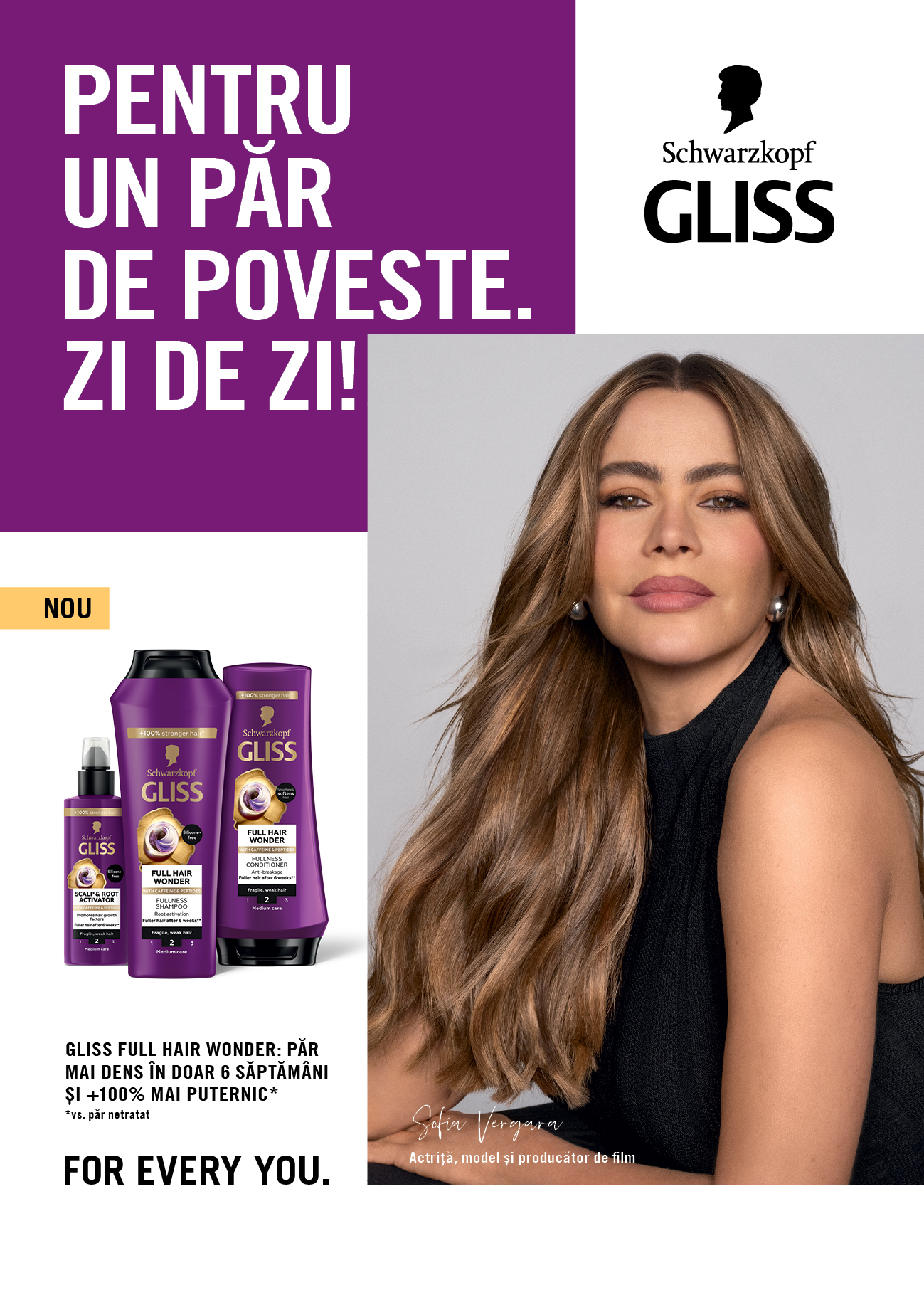”Faptul că am devenit ambasadoarea globală Schwarzkopf în 2024 a fost un moment important în cariera mea. Este un brand care rezonează cu viziunea mea de a celebra puterea exprimării de sine și a încrederii personale. Atunci când ești în fața camerei, încrederea contează enorm, iar un păr sănătos și bogat are un rol esențial în stima de sine. Tocmai de aceea sunt mândră să colaborez cu Schwarzkopf GLISS – un brand care protejează ceea ce mă face să mă simt puternică și îmi susține frumusețea din interior!” – Sofia Vergara, actriță și producătoare de film & Ambasadoare globală Schwarzkopf Gliss Full Hair Wonder