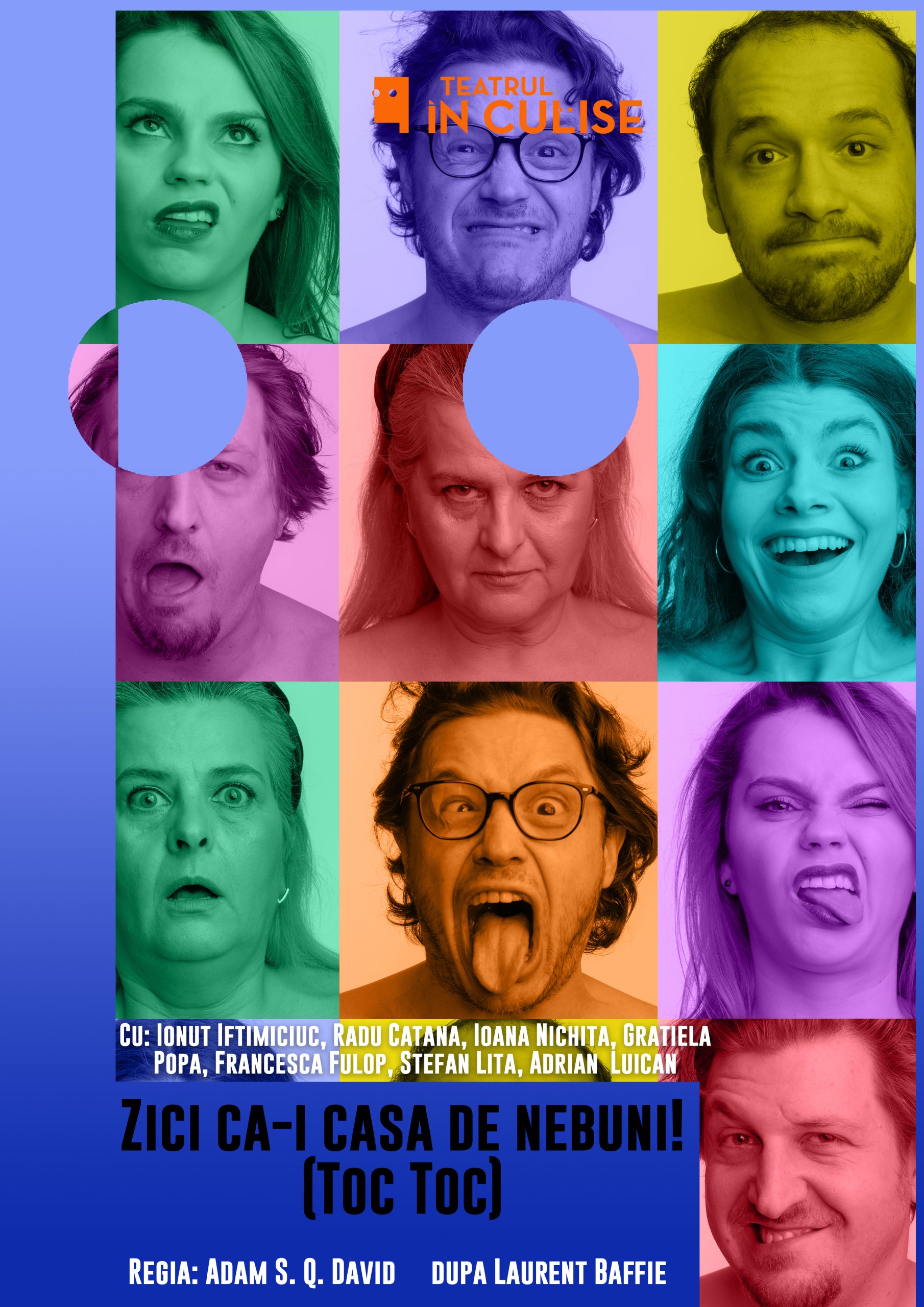 Pe 23 martie, de la orele 18:00 și 21:30, Teatrul În Culise lansează în premieră comedia Zici că-i casă de nebuni! (Toc Toc), un spectacol savuros ce aduce în prim plan personaje manicale și situații incredibile.