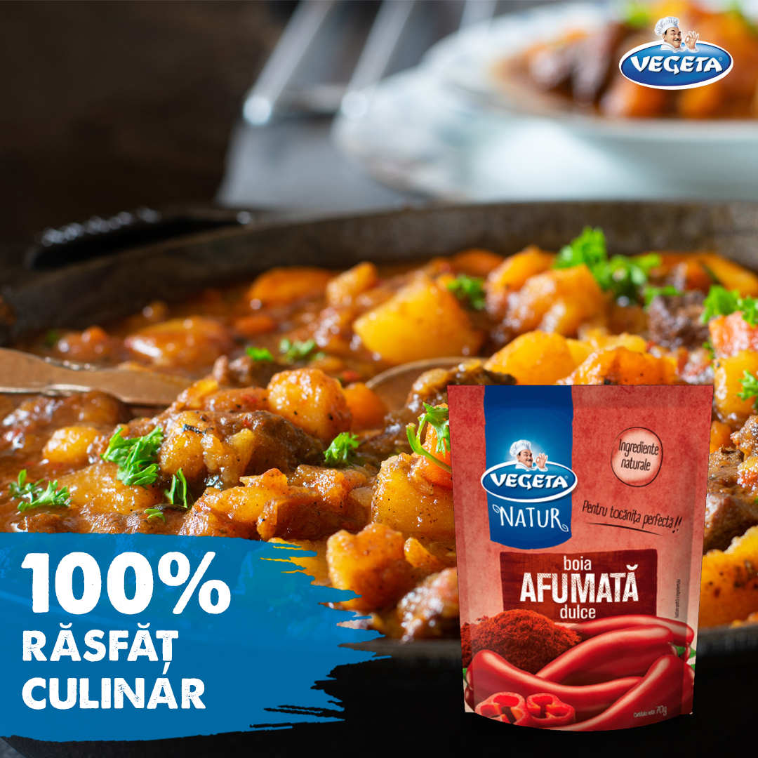 Și în sfârșit, de multă lume preferată, boiaua dulce afumată. Afumată cu fum natural! Fără arome adăugate! O poți folosi la marinarea cărnii, indiferent de metoda prin care o vei prepara ulterior, la grătar sau prin prăjire. Ce gust îi va da, chiar o să te mire! Și o să vrei să mănânci, de fiecare dată, doar friptură cu VEGETA Boia dulce afumată!