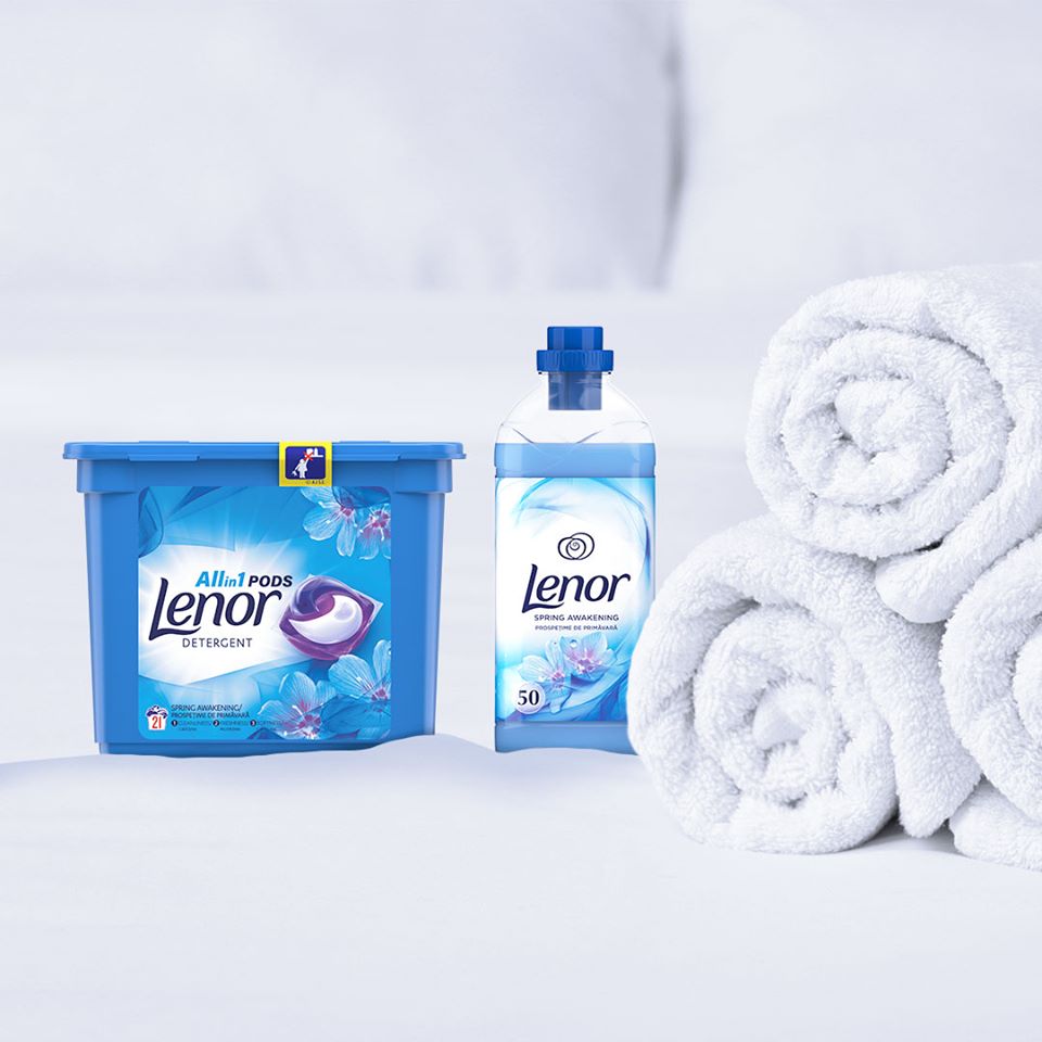 Lenor Allin1 PODS Spring Awakening asigură o curățare în profunzime, pentru o îngrijire impecabilă a celor mai noi amestecuri de fibre naturale și sintetice, spălarea chiar și la temperaturi reduse, contribuind la protejarea culorilor și a fibrelor din țesături.