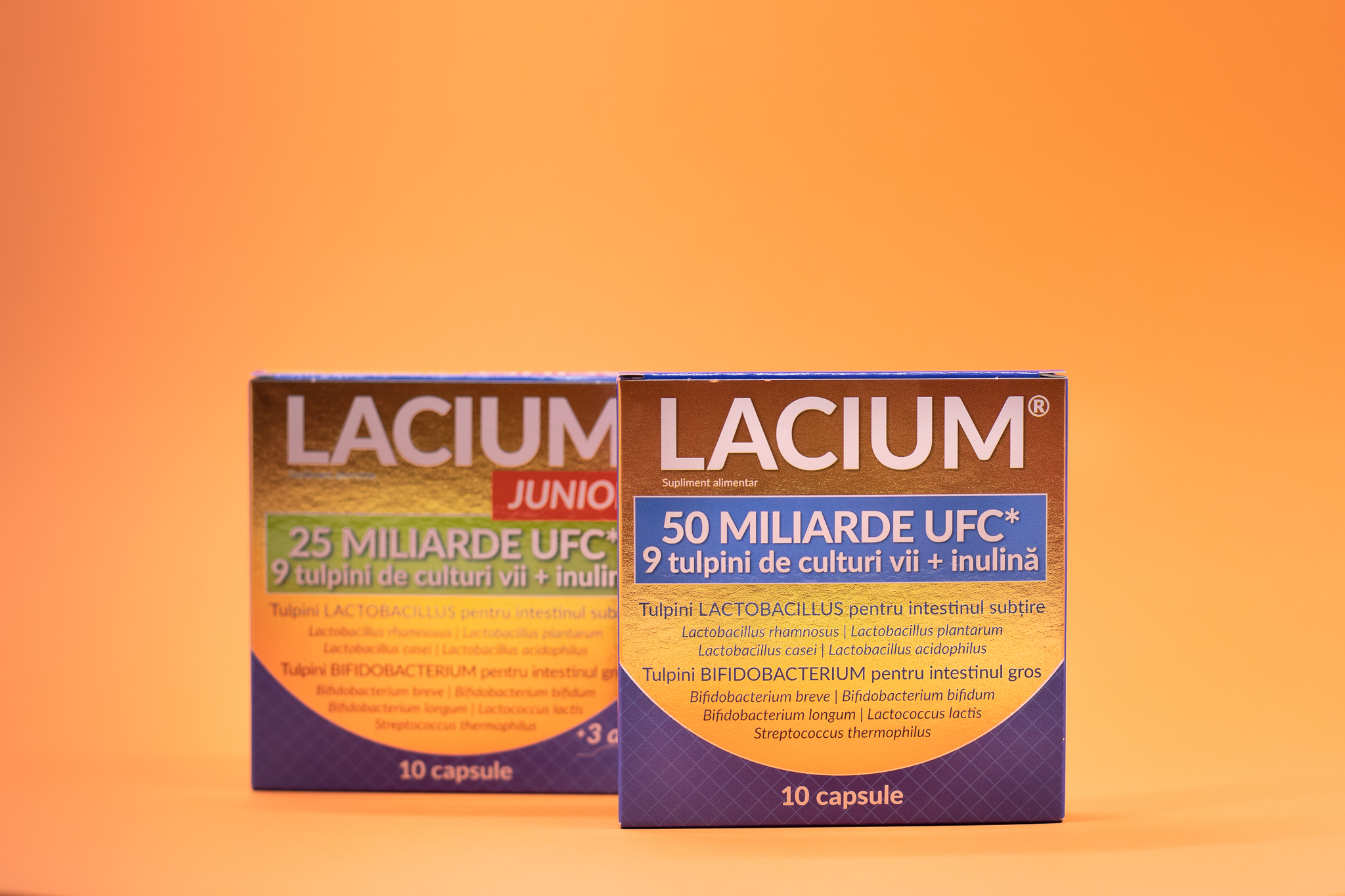 Special creată pentru a fi o formulă eficientă și puternică, LACIUM® conține 50 de miliarde de unități formatoare de colonii și 9 tulpini de culturi vii special selectate și cuprinse în fiecare capsulă, menite să restabilească echilibrul digestiv în cazul persoanelor care se confruntă cu disconfort digestiv. În plus, atunci când este utilizată în mod regulat, ajută și la promovarea sănătății digestive și a sistemului imunitar. Cele 9 tulpini de culturii vii sunt selectate atât pentru intestinul subțire, cât și pentru cel gros, pentru a asigura un efect complex, iar LACIUM® poate garanta acțiunea și stabilitatea culturilor de bacterii vii pe întreaga durată de valabilitate a produsului, pentru o acțiune eficientă a fiecărei capsule. Acesta nu este un simplu probiotic, ci un produs simbiotic, deoarece conţine atât probiotice, cât şi prebiotic. În cazul acestui supliment cu efect sinergic, inulina este prebioticul care hrănește microflora intestinală care populează intestinul. Produsele din gama LACIUM® nu conțin gluten, soia sau coloranți articifiali și sunt simplu de administrat atât în cazul adulților, cât și al copiilor.