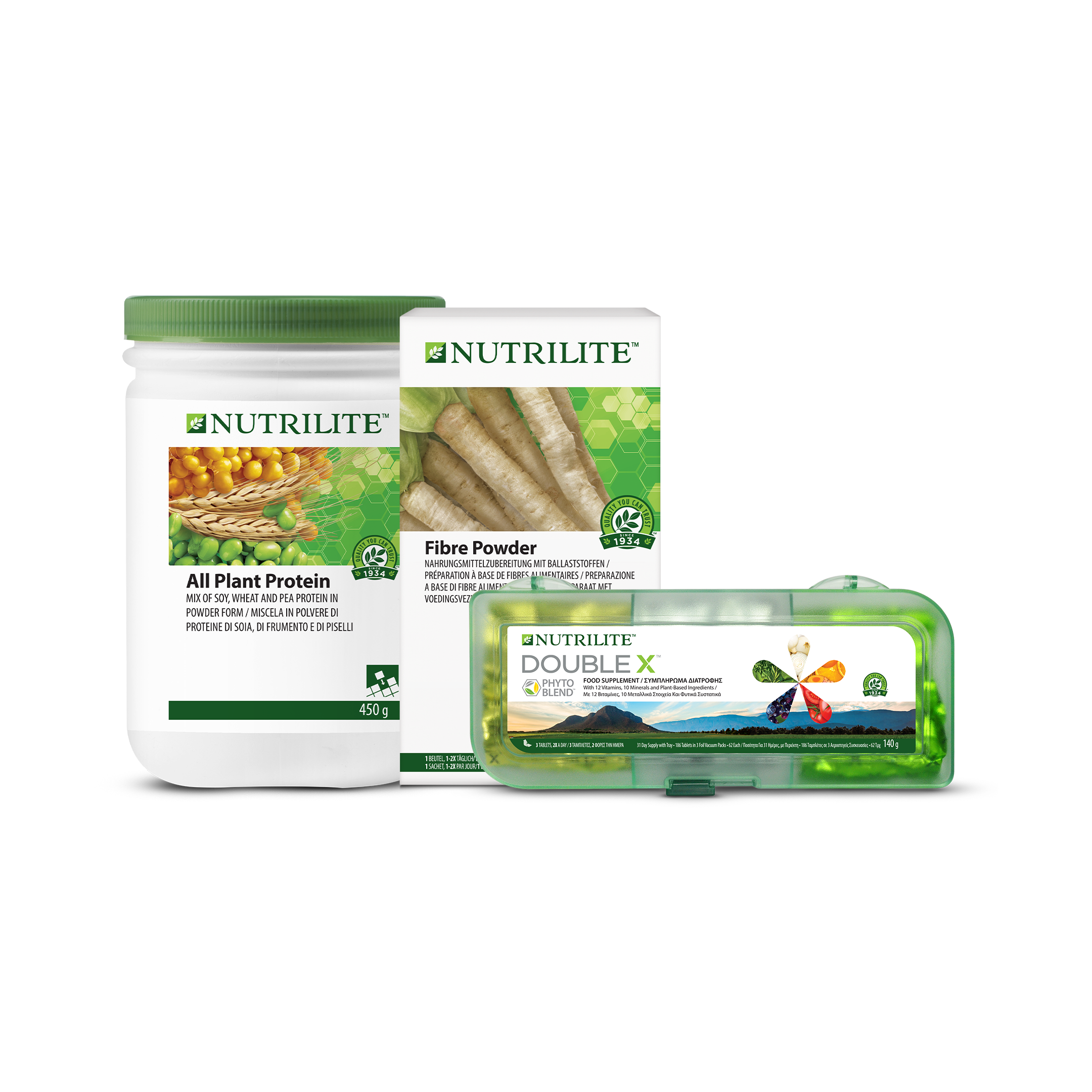 Nutrilite Morning Nutrition include unele dintre cele mai iubite produse de la Nutrilite – Nutrilite Proteine din plante, perfect pentru susținerea masei musculare, a forței și a sănătății generale, Nutrilite Double X, suplimentul premium cu multivitamine, multiminerale și fitonutrienți și Nutrilite Pudră din fibre, un amestec de trei fibre solubile. Conceput pentru a reduce carențele nutritive și pentru a susține starea de bine zilnică, acest program inovator dă putere persoanelor să își înceapă ziua corect.